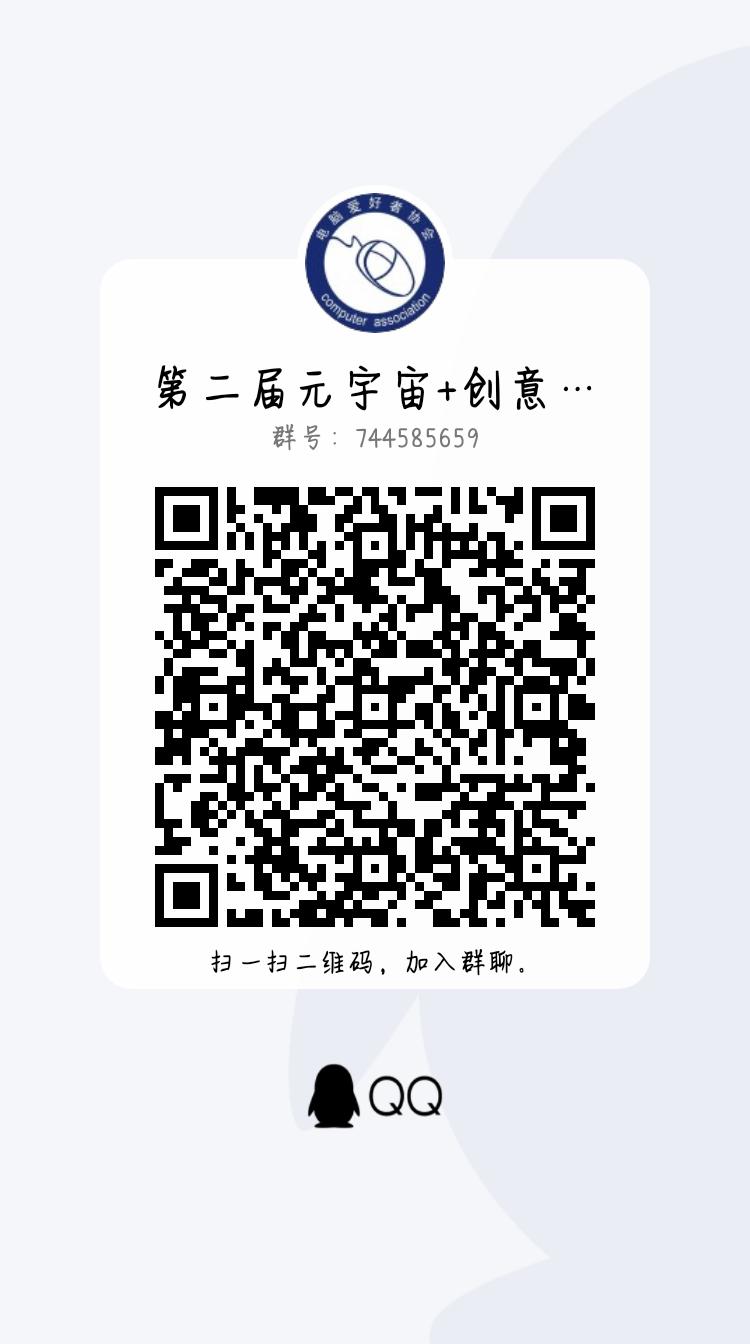 注:请参赛团队加入“第二届“元宇宙+”创意设计比赛”交流群,及时关注后续事宜。大赛交流QQ群:744585659。