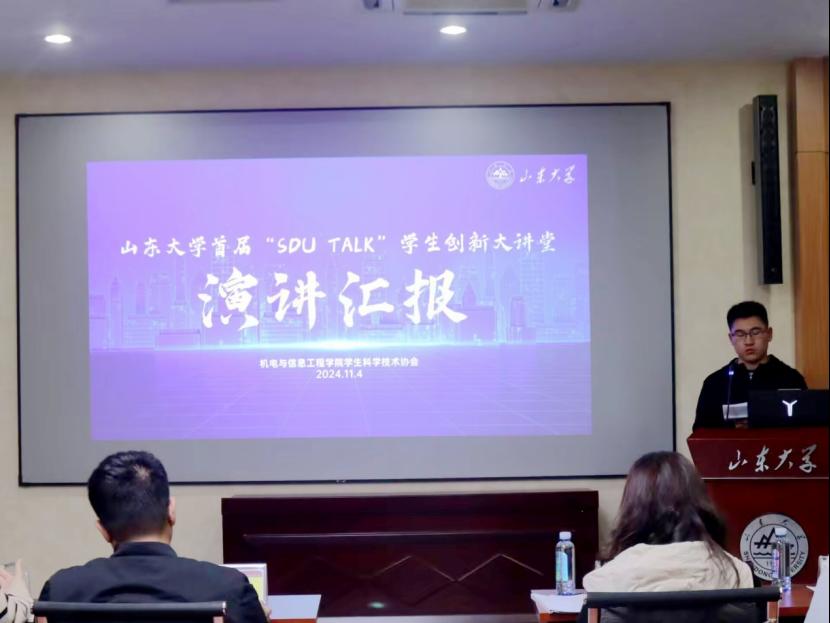 为积极响应党的二十大提出的“科教兴国战略”与“人才强国战略”,进一步聚焦“构筑‘学在山大、快乐成长’特色育人体系”目标要求,11月4日晚,诸侯快讯ok1122官网在知行北楼410会议室举办诸侯快讯入口官网登录首届“SDU TALK”学生创新大讲堂院级演讲汇报活动。学院团委书记赵海慧、竞赛指导教师王春鹏、学生科创工作分管老师李倩、辅导员魏冰洋进行答辩评审,各团队答辩人员及核心成员参会。