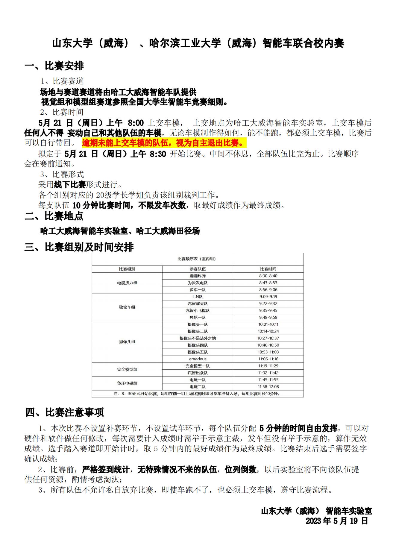 为了确保比赛的顺利进行,请参赛队伍阅读比赛通知,准时到达比赛场地报到,上交比赛车模并协助裁判进行车模检查。校内赛过程中机器人与电子设计协会将为参赛者提供必要的支持和服务,确保比赛能够顺利进行。